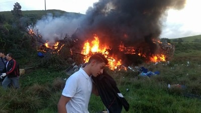 Um acidente na BR-101 em Guarapari-ES envolvendo duas ambulâncias, uma carreta e um ônibus deixou até o momento 21 morto e 21 feridos. O acidente aconteceu na madrugada desta quinta-feira (22/06). Segundo depoimentos de testemunhas, com o impacto da batida o ônibus partiu no meio e explodiu.